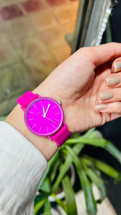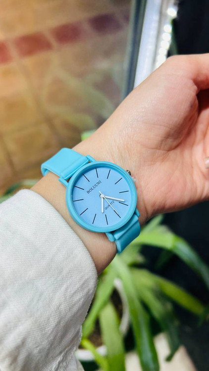 ساعت مچی زنانه و دخترانه بلون گرد . بند سیلیکونی