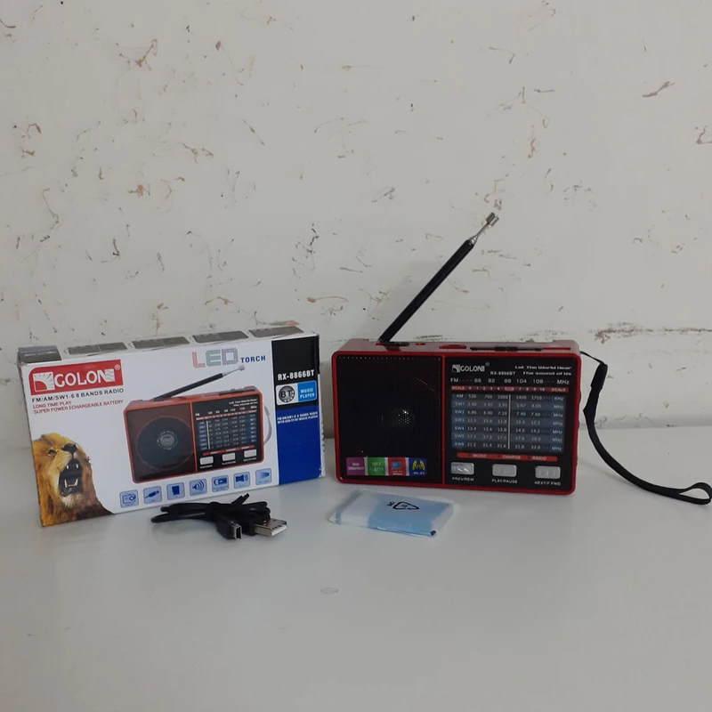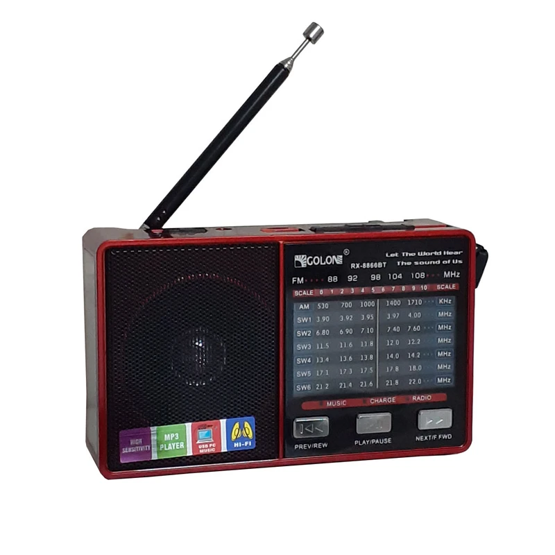 یکی از نقاط قوت RX-8866BT تنوع در روشهای تامین انرژی است. این دستگاه از باتری داخلی لیتیومی قابل شارژ (معمولاً مدل BL-5C) استفاده میکند. همچنین میتوان از سه عدد باتری قلمی AA برای شارژدهی استفاده کرد. علاوه بر این، امکان شارژ از طریق کابل USB و حتی در برخی نسخهها با پنل خورشیدی فراهم شده است. این ویژگیها باعث میشود دستگاه گزینهای ایدهآل برای شرایط بدون دسترسی به برق باشد.